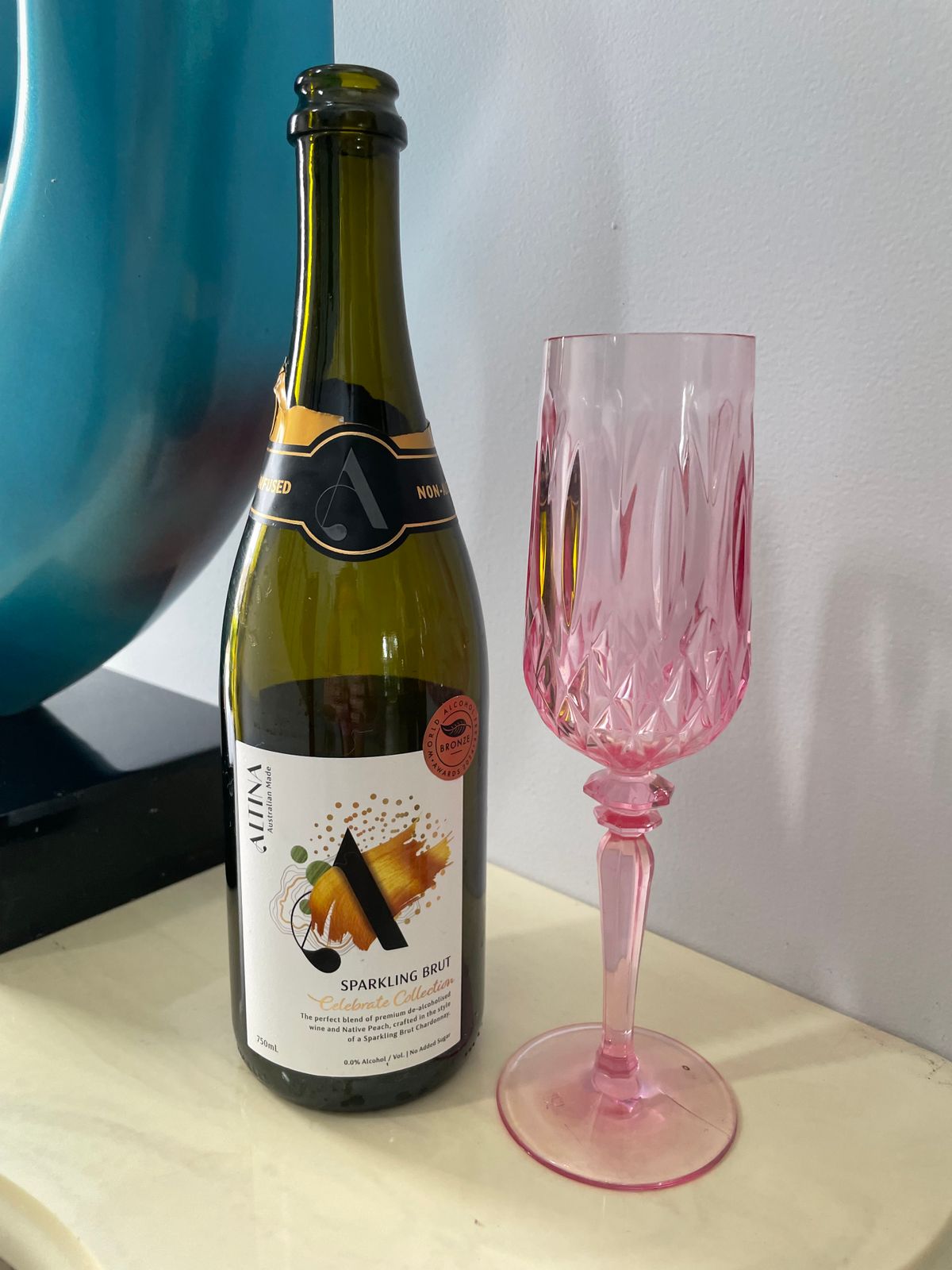 Fill a flute or tall glass with ice. Pour in alcohol-free sparkling and a dash of elderflower cordial. Stir gently and garnish with a cucumber ribbon for a crisp, elegant twist.