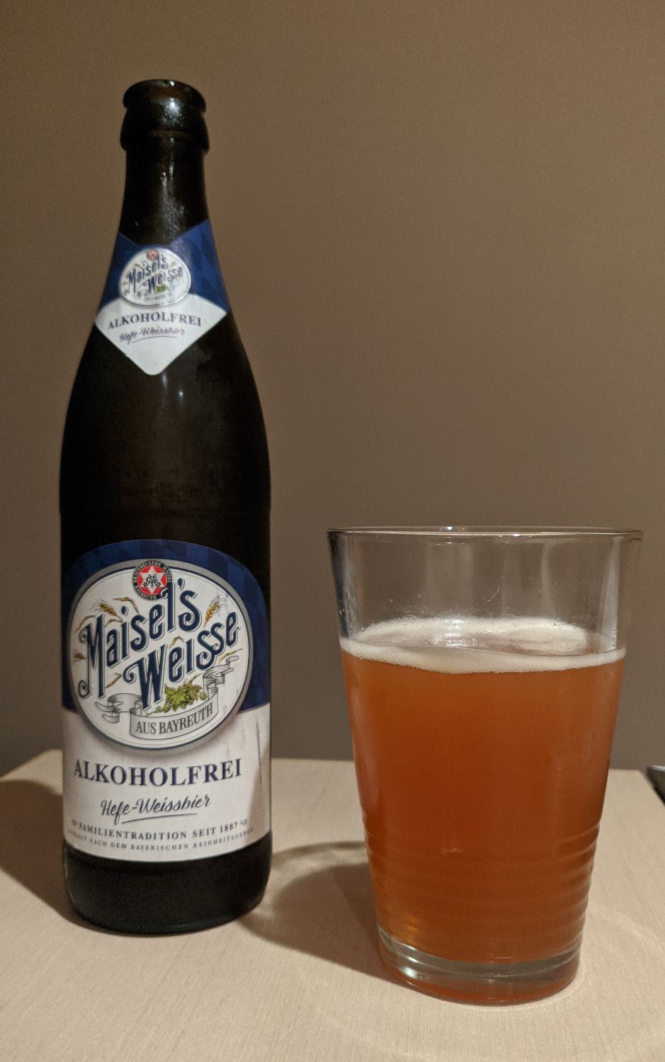 Maisel's is one of my favorite brands when it comes to non-alcoholic wheat beer. It's refreshing and has a satisfying wheat taste. It seems less well-known and available in Australia than Paulaner but in my opinion is on par with Paulaner taste-wise.