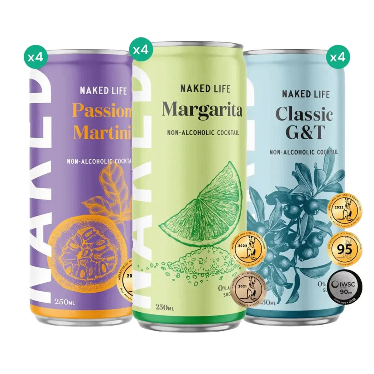 This bundle has twelve alcohol free cocktails, ready to enjoy. It includes four Margarita with fresh lime and a little salt, four Pink Paloma with bright grapefruit and citrus fizz, and four Passion Martini with tropical passionfruit and smooth vanilla. These drinks are light, refreshing and full of flavour. You can enjoy them straight from the can or pour over ice. Great for weekends, parties, picnics or relaxing afternoons. A fun way to enjoy cocktail flavours with none of the usual worries.