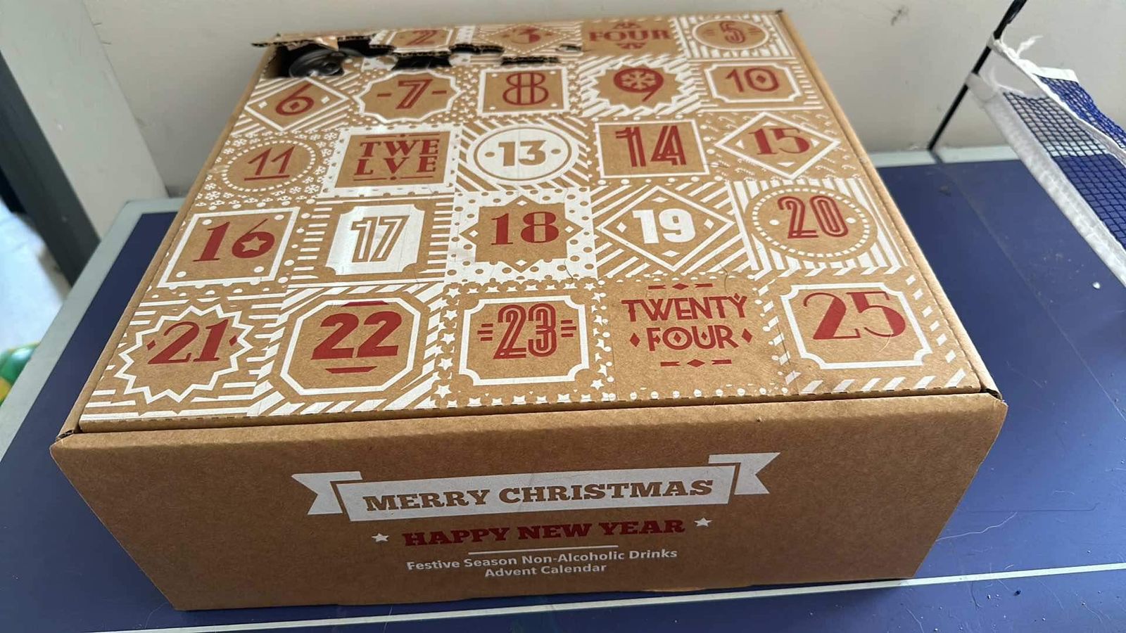 Each drink is hidden behind a numbered cardboard window. Starting on 1st December, open the window for that day to reveal your drink. The box fits most standard shelves and storage spaces, making it easy to keep until ready to enjoy.